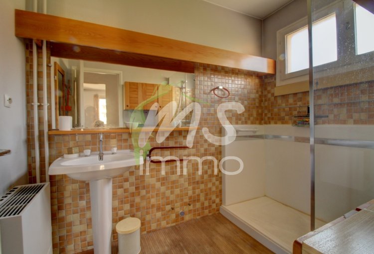 La pièce de vie, lumineuse et agréable, s'ouvre sur une terrasse d'environ 30 m²,offrant un bel espace extérieur. La cuisine, indépendante et bien agencée, est prolongée par un cellier. L'espace nuit comprend trois chambres, une salle de bains et des WC séparés. Une cave et un garage complètent l'ensemble.