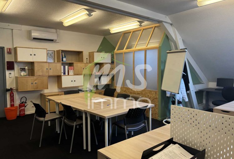 Bureaux d'env. 402 m² situé au 3ème étage avec ascenseur. Composition :Palier, dégagement, 6 bureaux, 6 salles de classe, sanitaires, archives, reprographie et une grande terrasse avec préau ouvert. Possibilité d'acheter un plateau d'env. 110 m² au 1er étage en sus.