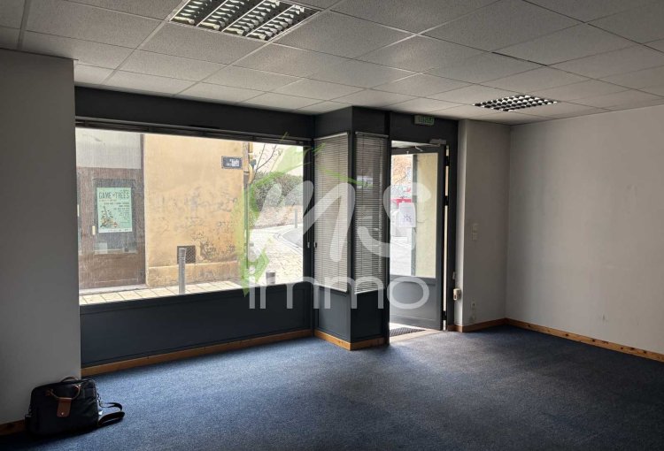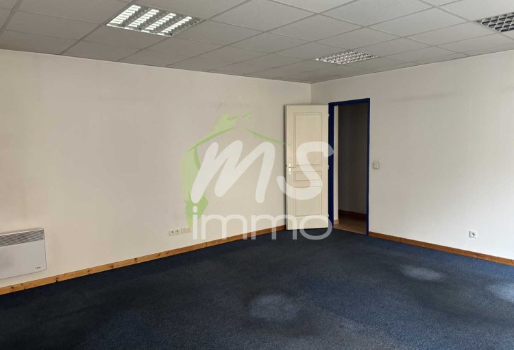 Bureaux d'env. 87 m²l situé au rez-de-chaussée. Composition : Accueil, 2 bureaux, dégagement, salle de réunion, w.c avec lavabo, une pièce de rangement. Possibilité de location (900 ' HT/mois).