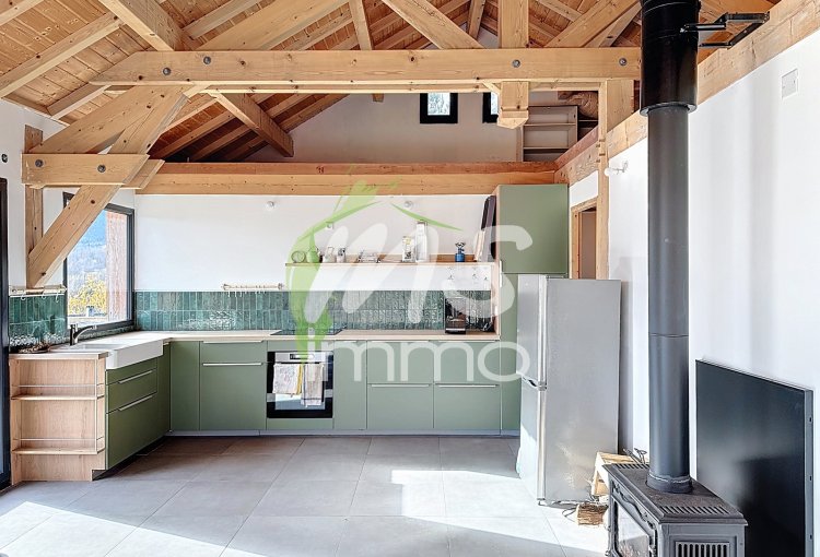 Sur la commune du Noyer, chalet T3 de plain-pied d'environ 78 m² habitables, édifié sur un terrain de 1305 m².