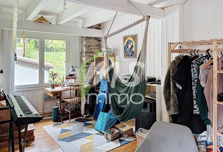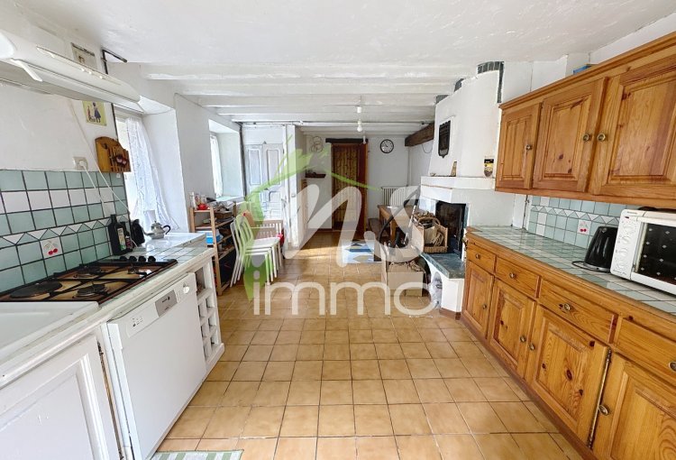 Le rez-de-chaussée se compose d'un espace de vie fonctionnel avec une cuisine et un poêle à bois.