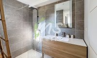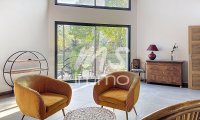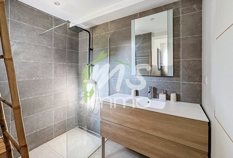 Elle se compose, en rez-de-jardin, d'une entrée avec buanderie, d'un grand salon lumineux donnant sur la terrasse et le jardin, ainsi que d'une cuisine équipée.