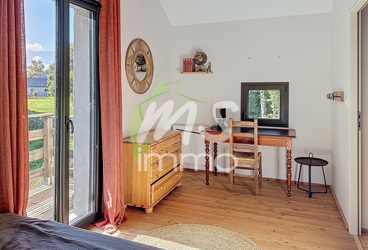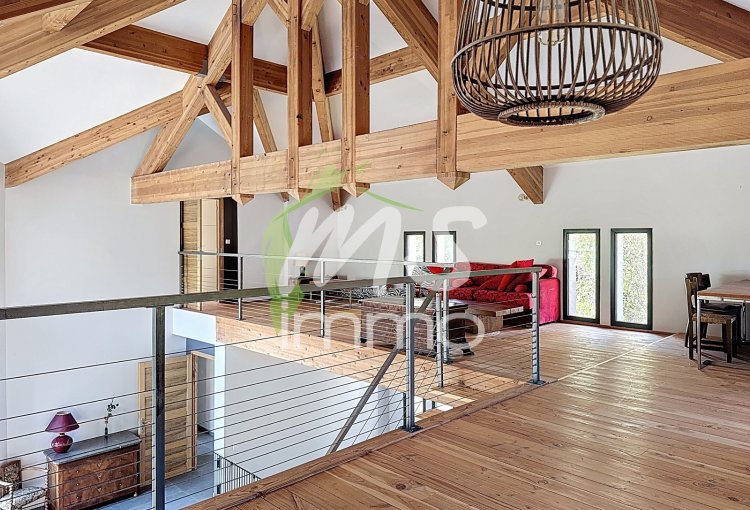 À l'étage, vous trouverez une grande mezzanine, deux chambres supplémentaires, ainsi qu'une deuxième salle d'eau.
