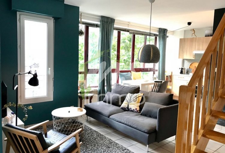 Centre ville, charmant T2 Bis de 50.79 m² en duplex situé au 4ème étage avec ascenseur. Il se compose d'un coin cuisine aménagé en meubles et électroménagers (1) ouvert sur le séjour, une chambre, salle de bain, un WC par niveau, à l'étage un espace nuit . Chauffage de base au sol et convecteurs individuels électrique.
