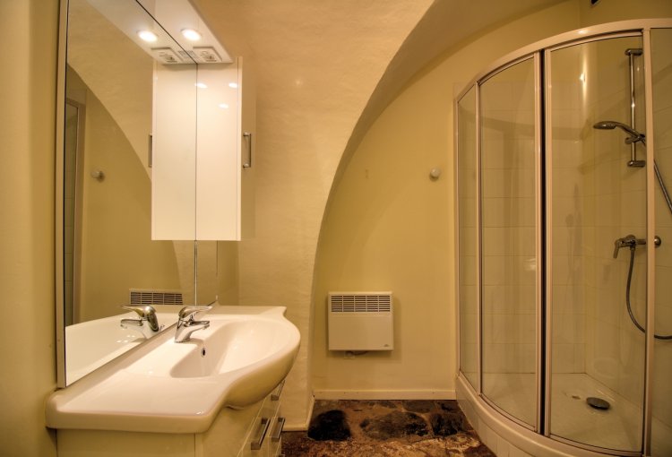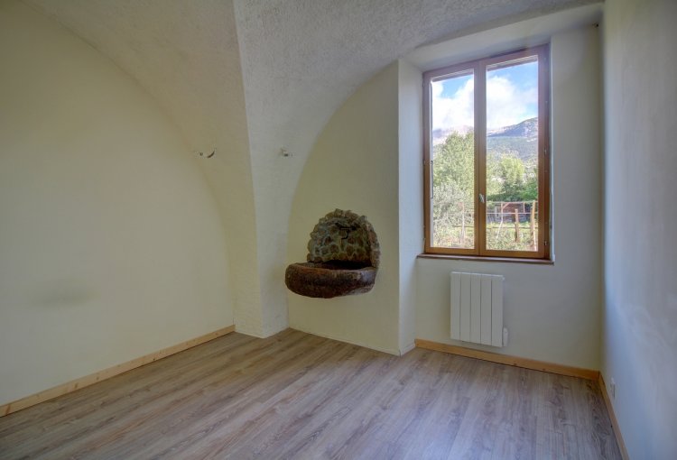 Bel appartement de type 3 d'une superficie habitable de 57.82 m² (63 m² au sol) dans une ancienne maison de village avec beaucoup de cachet. Elle se compose d'une cuisine équipée (1) ouverte sur le séjour avec cheminée à insert, une salle d'eau et deux chambres. Le chauffage est individuel électrique et l'eau chaude par cumulus.