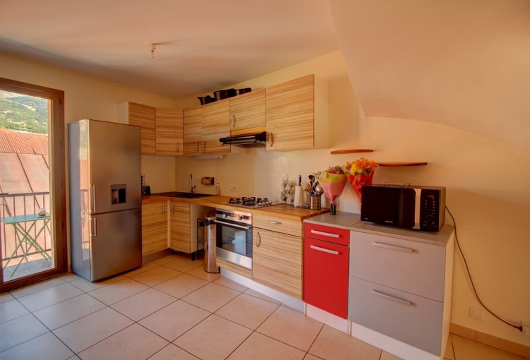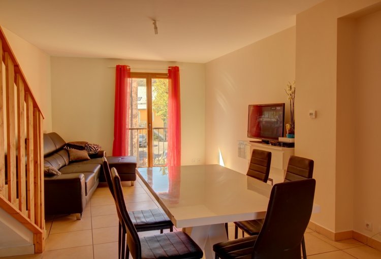 Appartement de type 3 bis en duplex, situé au 1er étage, d'une superficie habitable de 71.46 m². Il se compose d'un séjour ouvert sur la cuisine équipée en meubles et électroménagers(1), un cellier à l'étage deux chambres, une salle de bains et un espace nuit en mezzanine. Le chauffage est au sol électrique et l'eau chaude par cumulus.