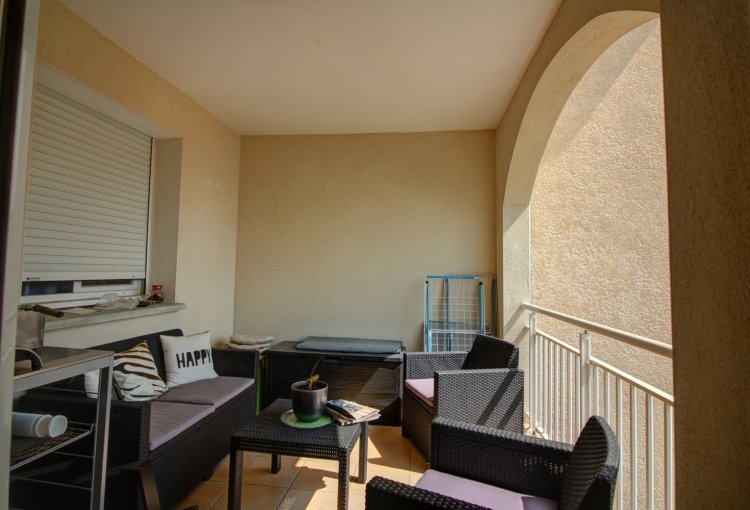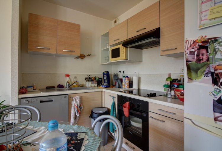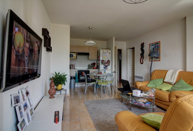 Bel appartement de 56.79 m² au 1er étage d'une résidence calme, avec une terrasse couverte. Une cuisine équipée(1) ouverte sur le séjour, deux chambres avec placard, une salle d'eau. Expo Sud.Chauffage individuel électrique et base collective. Un garage.