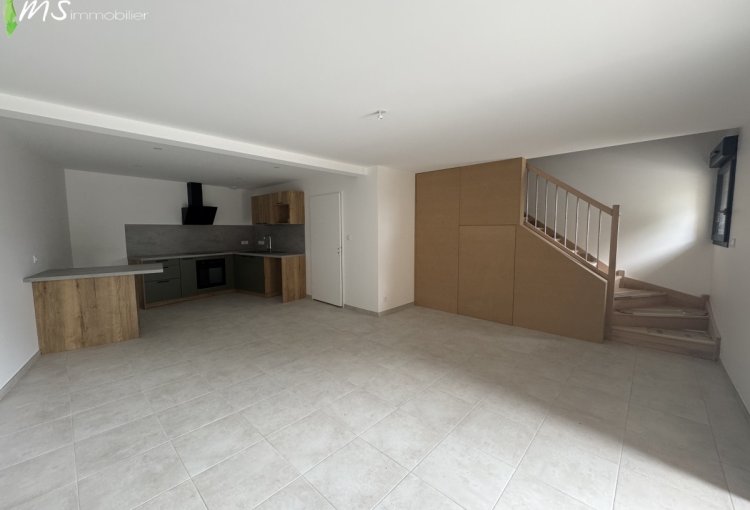 Dans un corps de ferme, beauT4 en Triplex entièrement rénové, d'une superficie habitable de 115.54 m², situé en rez-de-chaussée. Il se compose d'une cuisine équipée de meubles et électroménagers(1), ouverte sur le séjour, à l'étage deux chambres, une salle d'eau et au dernier niveau une spacieuse chambre. Le chauffage et l'eau chaude sont par pompe à chaleur.