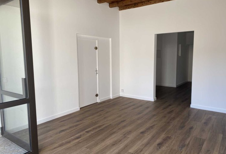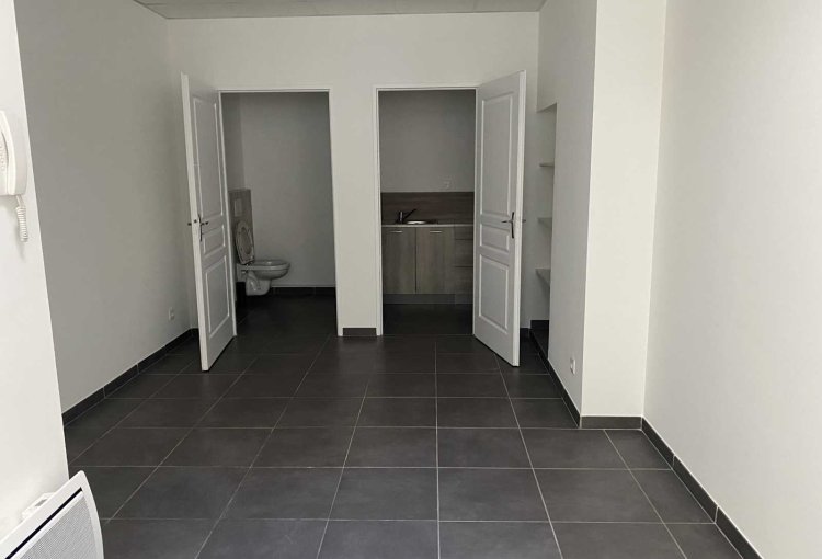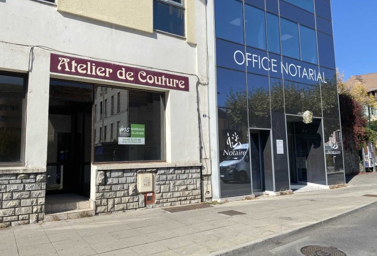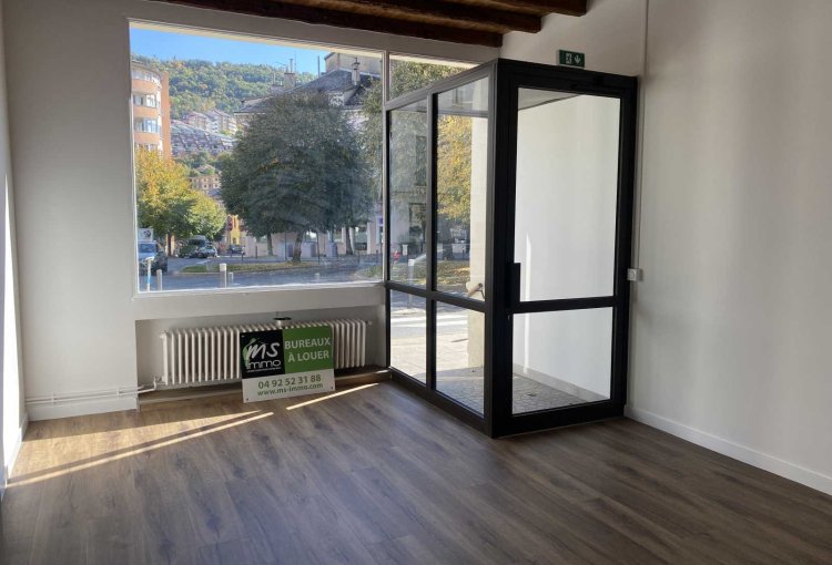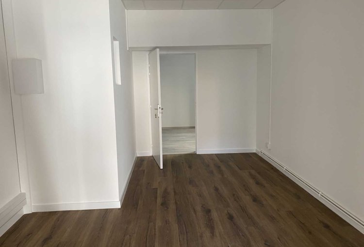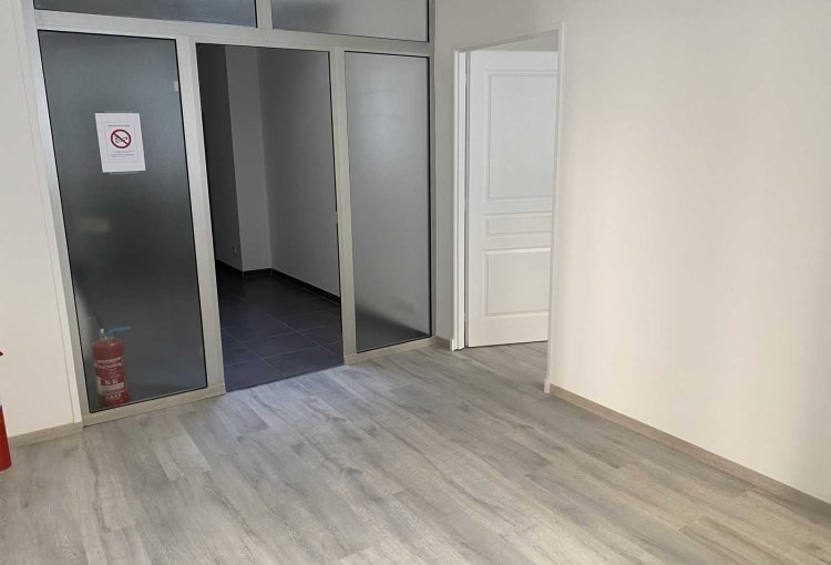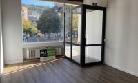 Local à usage de bureau d'environ 90 m² composé de 5 espaces de travail, sanitaires, coin cuisine. Grande baie vitrée légèrement surélevée. Très bon visuel. Convient pour bureau ou activité libérale.