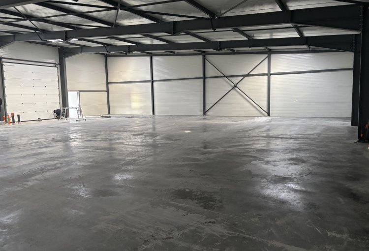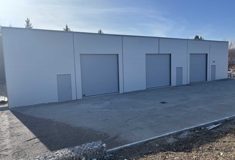 Entrepôt d'env. 200 m² (20 x 10 m) sur 1.599 m² de terrain en commun. Aires de stationnement, enrobé, clôture, portail coulissant, plateforme périphérique, espaces verts, dalle béton, porte sectionnelle 4 x 4 m, portes de services, parois + toiture en panneaux isolant 40 mm.