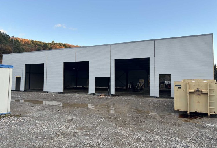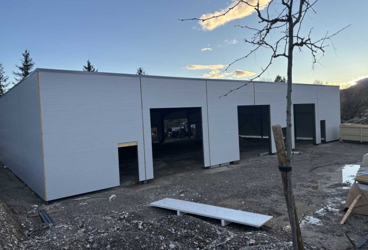 En cours de construction : Bâtiment d'activité à usage d'entrepôt d'env. 400 m² (20 x 20 m) sur 1.599 m² de terrain en commun. Aires de stationnement, enrobé, clôture, portail coulissant, plateforme périphérique, espaces verts, dalle béton, 2 portes sectionnelles 4 x 4 m, portes de services, parois + toiture en panneaux isolant 40 mm.