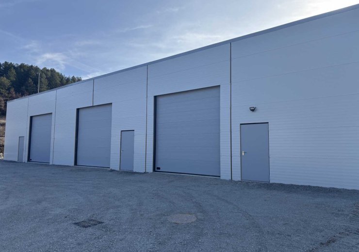 Entrepôt d'environ 420 m². Construction en structure métallique, panneaux isolés, 2 portes sectionnelles, abords goudronnés, grands volumes, dalle au quartz, arrivées d'eau et d'électicité.